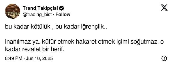 inanılmaz ya. küfür etmek hakaret etmek içimi soğutmaz. o kadar rezalet bir herif.‘