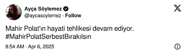 Mahir Polat’ın ağabeyi Turgay Polat, Erkam Erdem’in bu paylaşımını alıntılayarak Adalet Bakanı Yılmaz Tunç’a çağrıda bulundu: