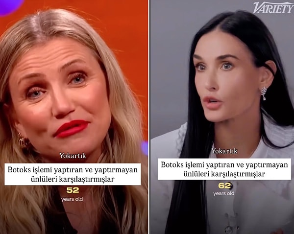 Hollywood’un iki efsane ismi, lakin iki zıt estetik hikayesi! Bir yanda doğallığıyla yıllara meydan okumak yerine onları kucaklayan Cameron Diaz, öteki yanda gençlik ısrarından asla vazgeçmeyen Demi Moore var.