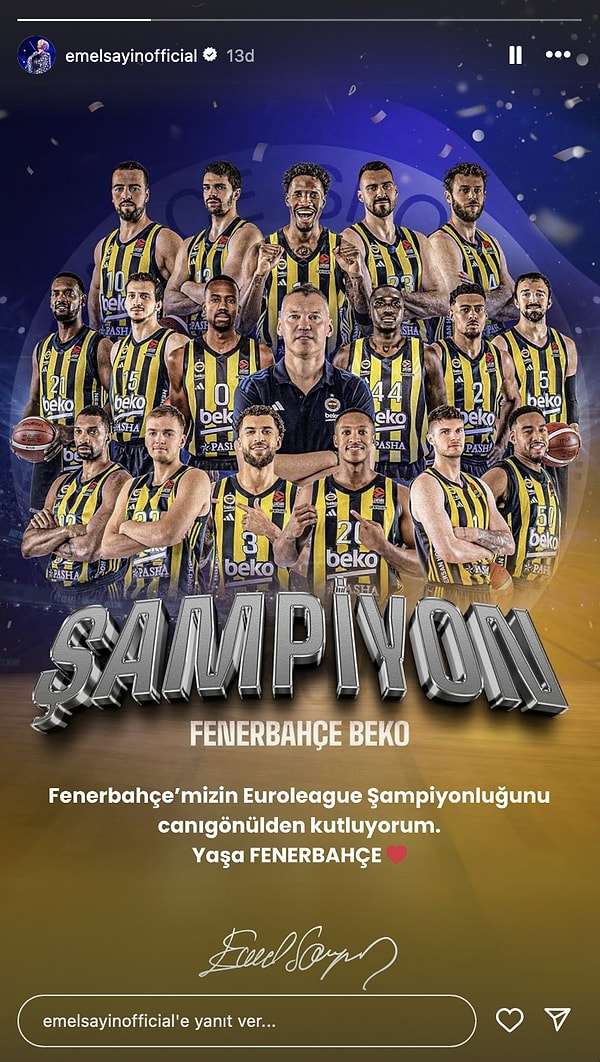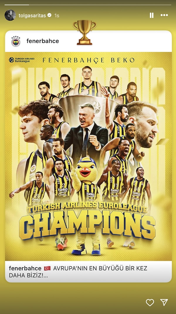 Fenerbahçeli ünlüler de yerinde duramadı tabii! Buyurun, ikinci yıldızını alan Fenerbahçe Beko’ya gelen yorumları bir arada görelim; Tolga Sarıtaş